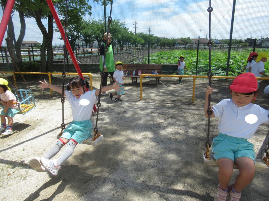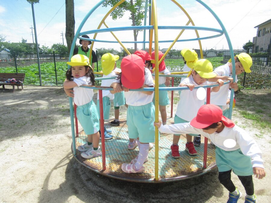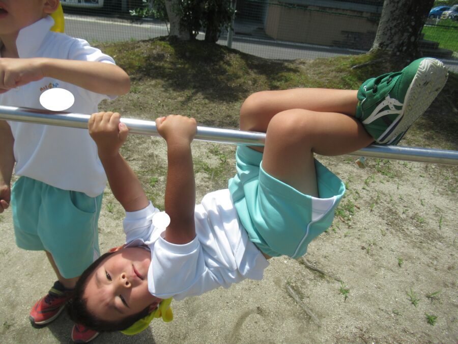 道中見つけた鷺さんに大興奮でした公園に着いてからは元気に遊んでいましたよみんないい笑顔でした鉄棒では体操教室で練習した技に挑戦です!!!