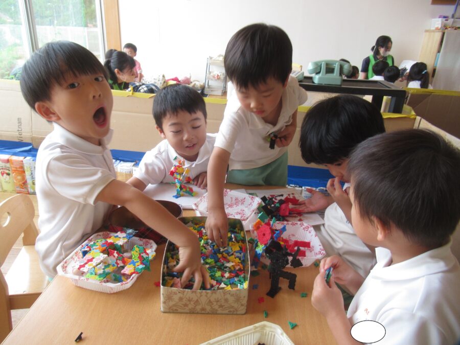 ラキューコーナーでは、説明書をよく見て作っていました!
