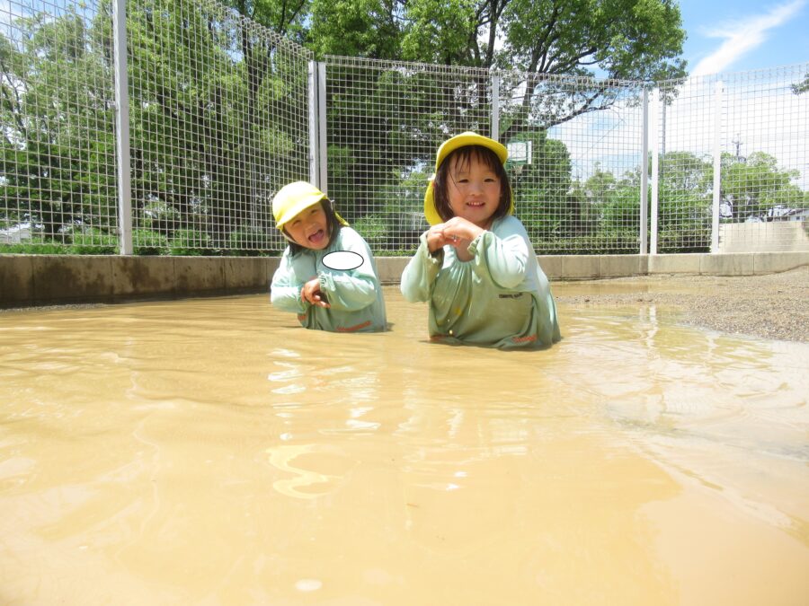 大きなどろ池に座る子も!「冷た~い!」と大喜びでしたよ🎶