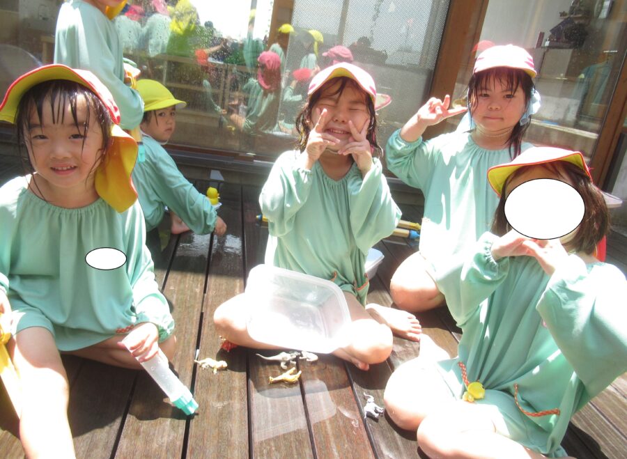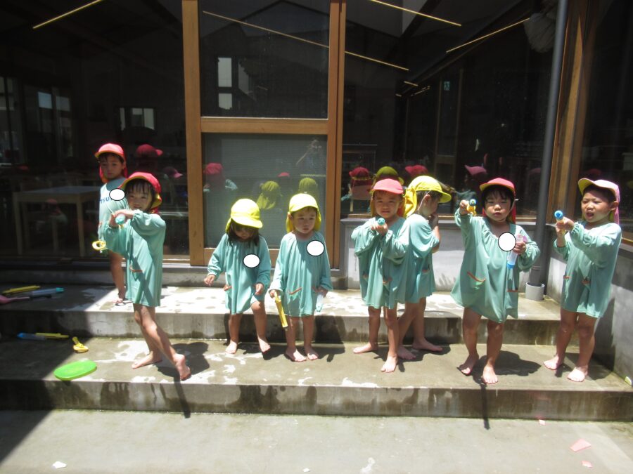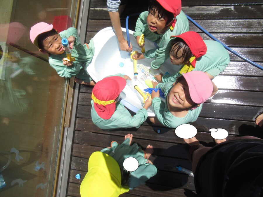 みんなと一緒に水鉄砲で水を飛ばしたり・・・
