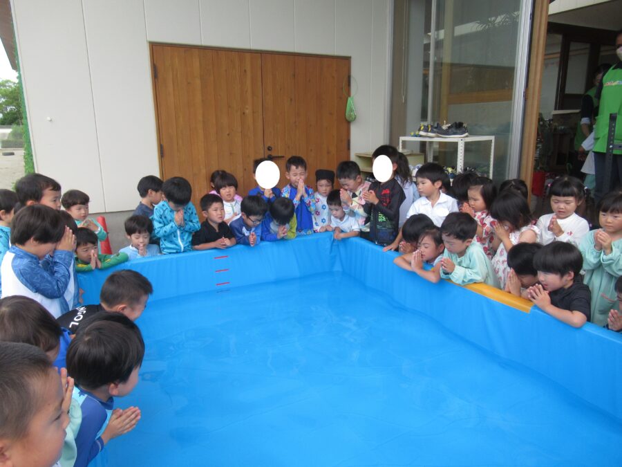 みんなが事故なく安全にプールを楽しめるように、お願いをしました!![]()