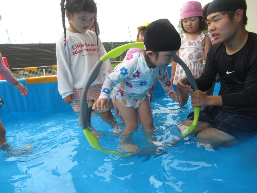 輪っかくぐりは顔をお水につけてくぐっていました!![]()