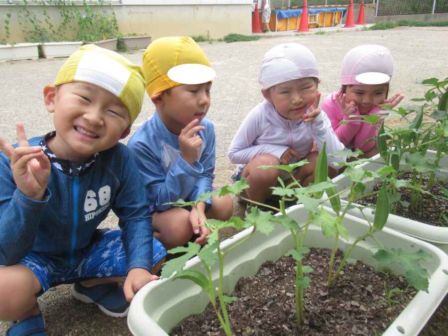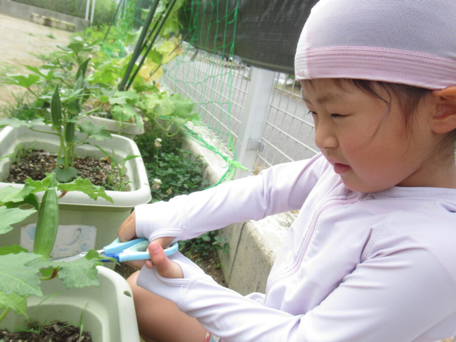 どきどきさんのオクラがたくさんなったので今日は朝から収穫をしました!