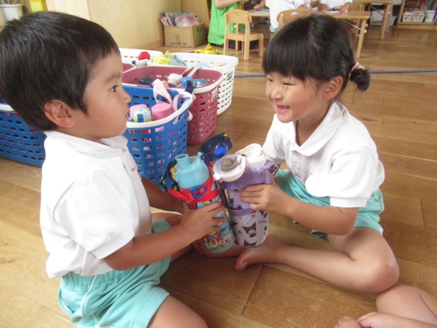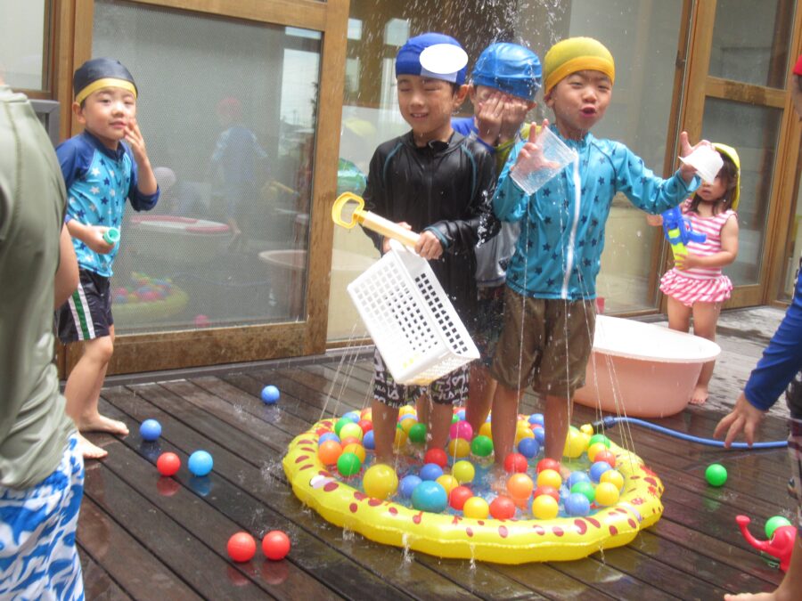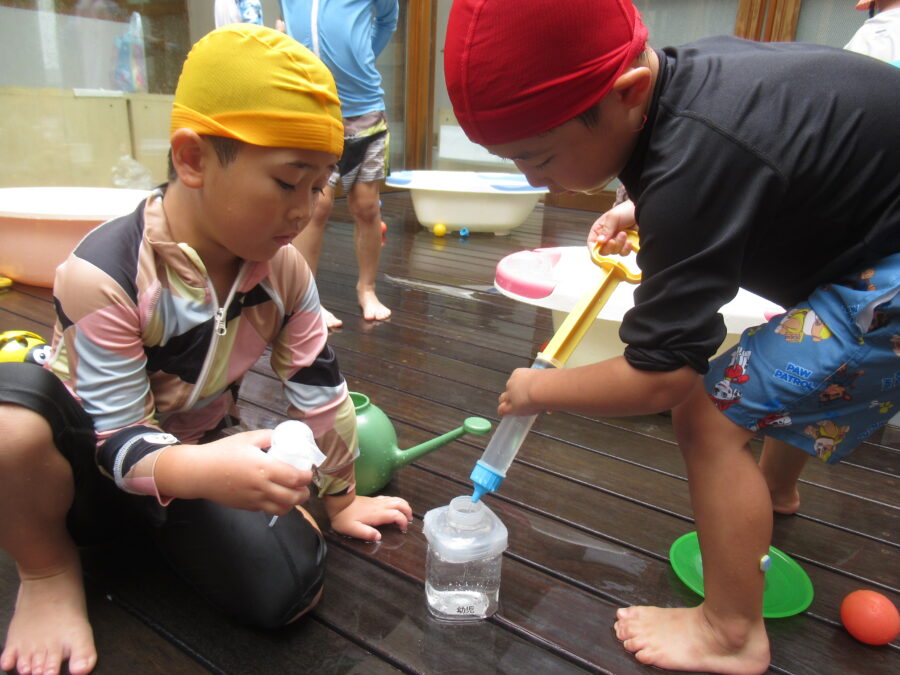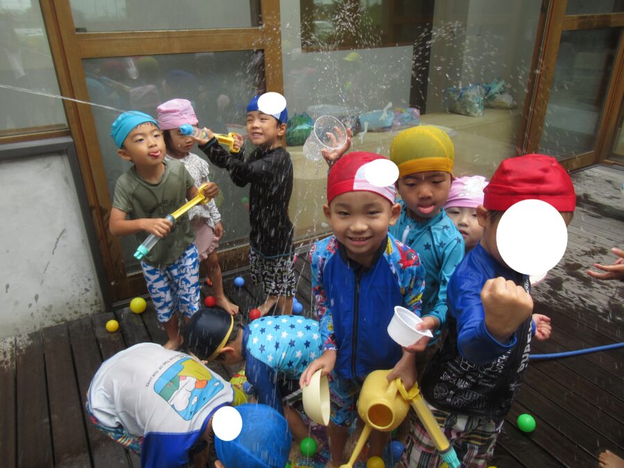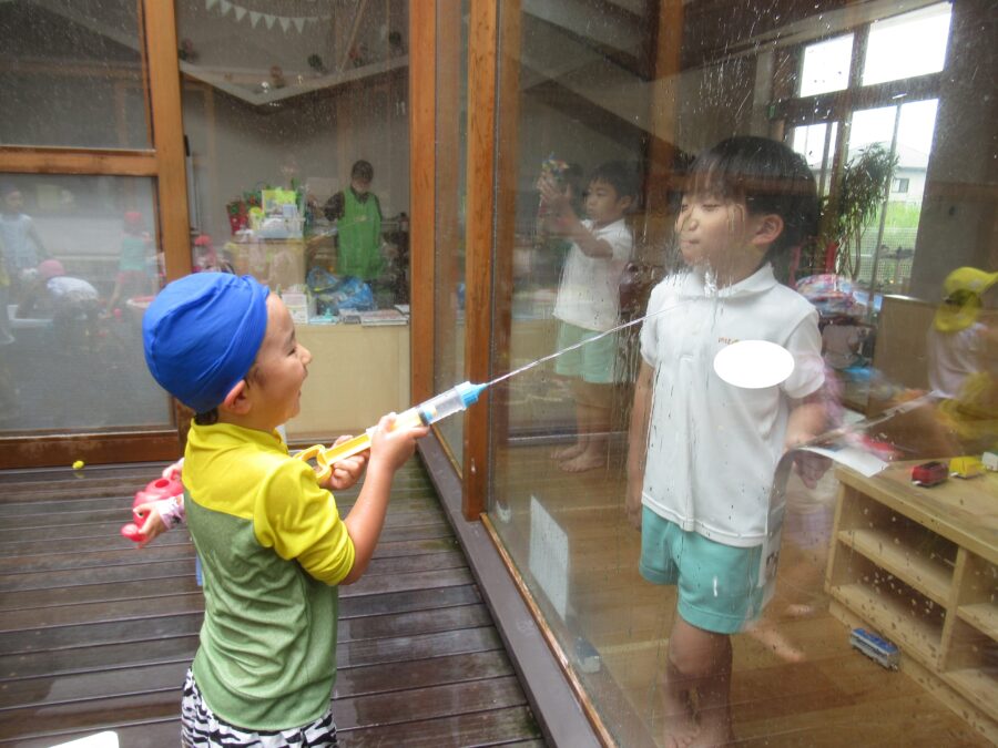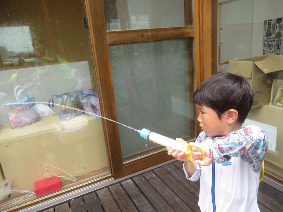 水鉄砲を楽しむお友だち