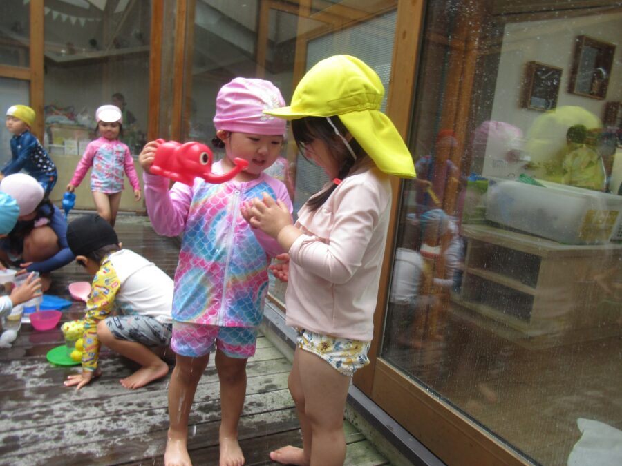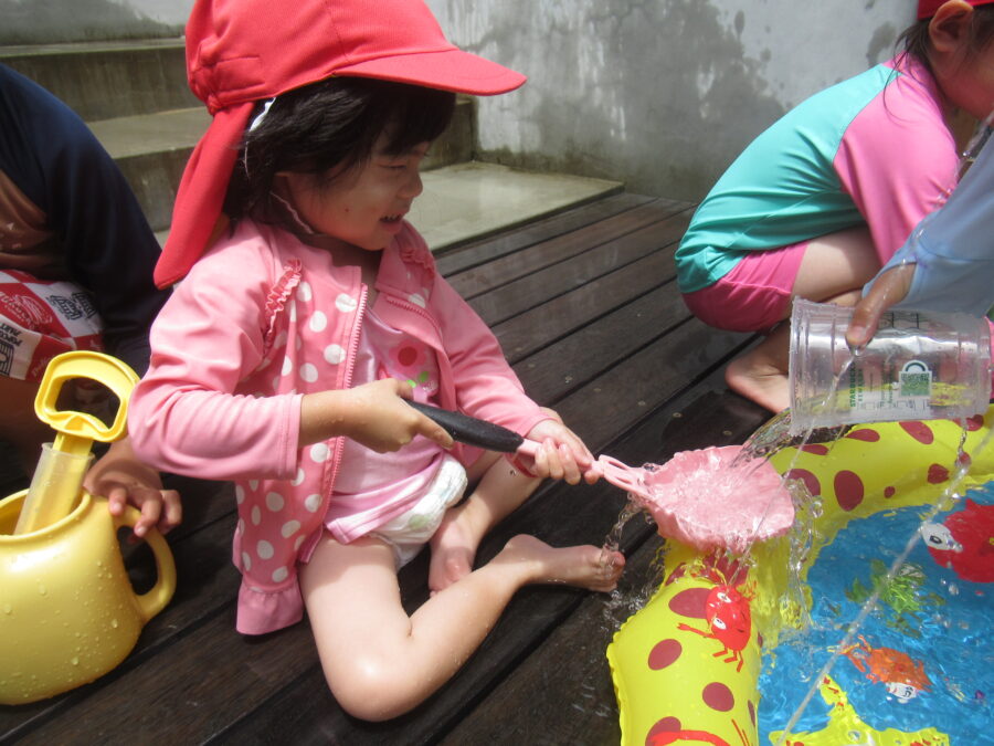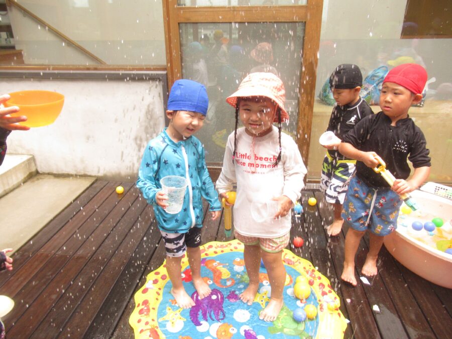 そして今日は中庭でお水遊びを楽しみました!