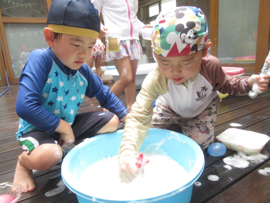 他には、泡遊びをして楽しみました!