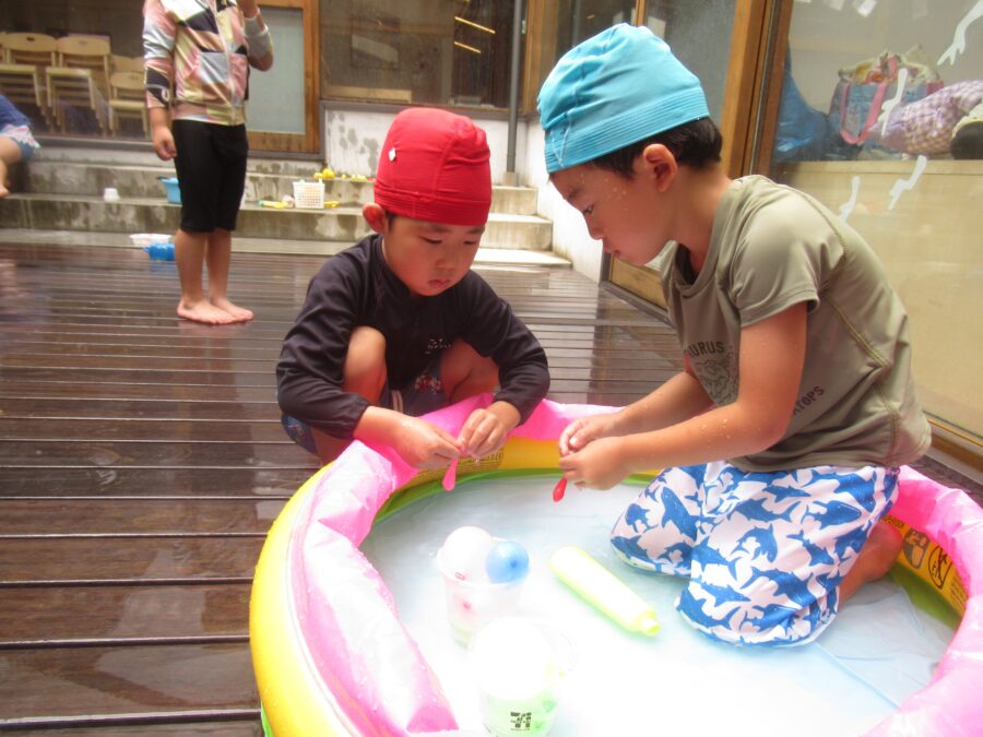 水風船に夢中なみんな。ぷよぷよな感触に大喜び!