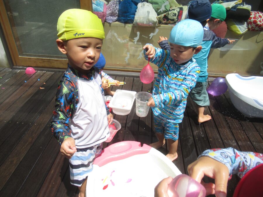 今日は水風船を作って、ぷにぷにの感触を楽しんだり、