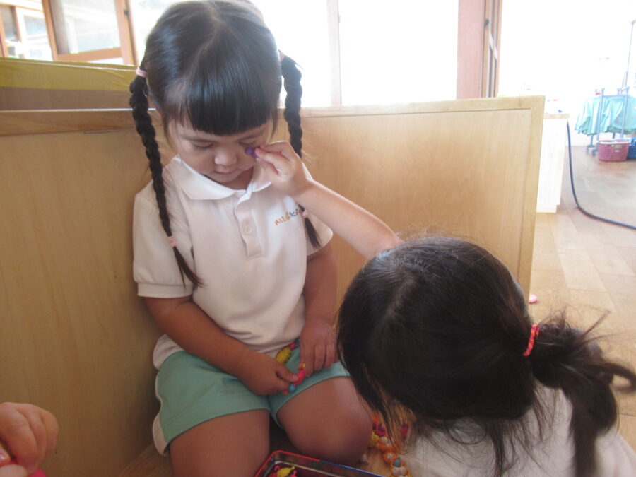 お化粧してあげるね~!とお友だちにしてあげる姿も
