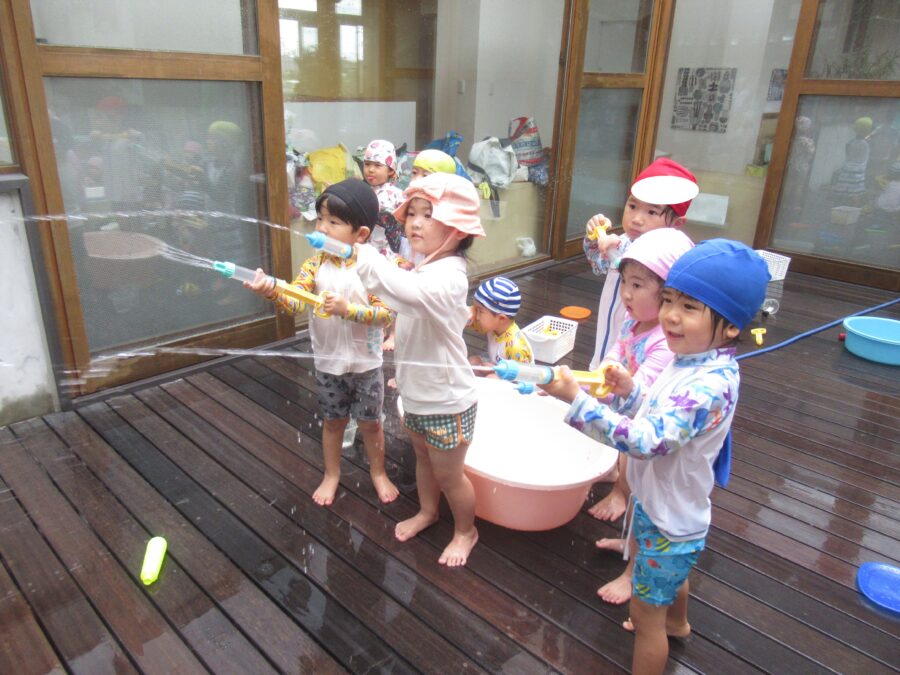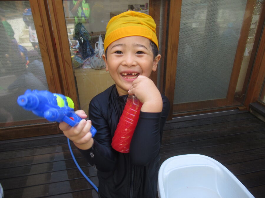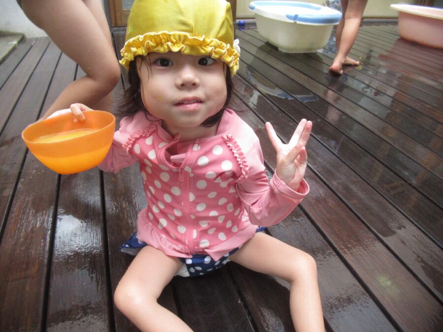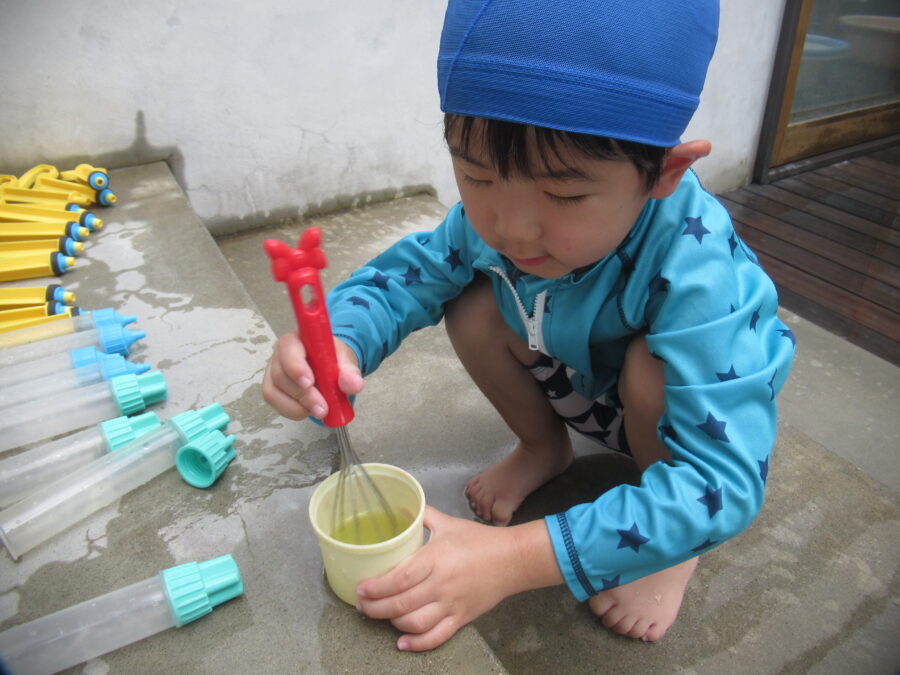 お友だちと混ぜ合って、いろんな色の色水ができていました!