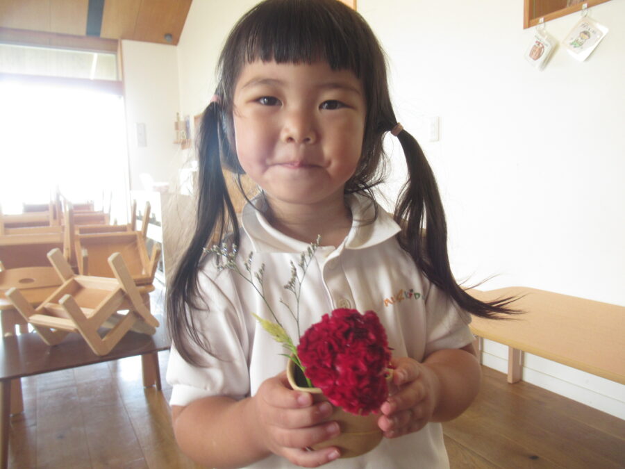 昨日お休みしていたお友だちはフラワーアートをやりました