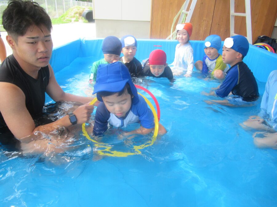 プールに入れなかったお友だちは室内で体操教室を行いましたよ