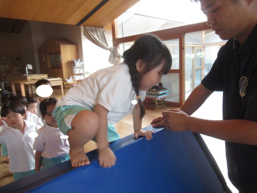 マットのお山を登ったり鉄棒をしたりして身体をたくさん動かしましたよ