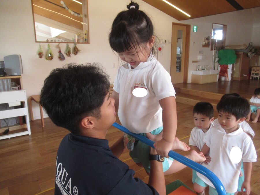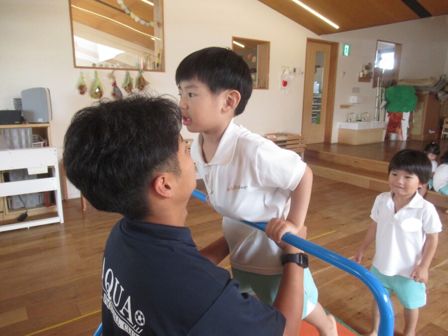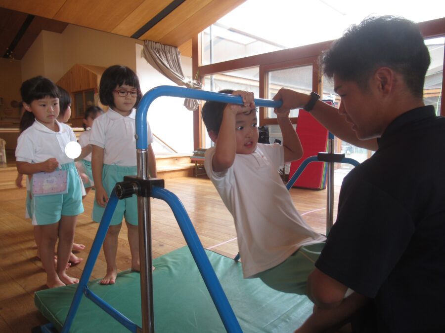 わくわくさんも鉄棒をぎゅっと握って頑張っていました