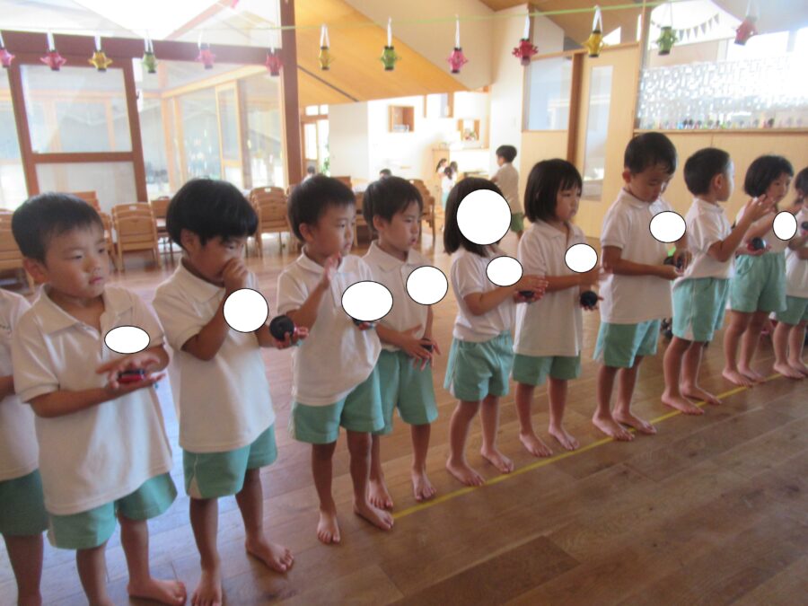最後の歌では、カスタネット・スズ、トライアングル、タンバリンを使って音を出しながら歌いましたよ!