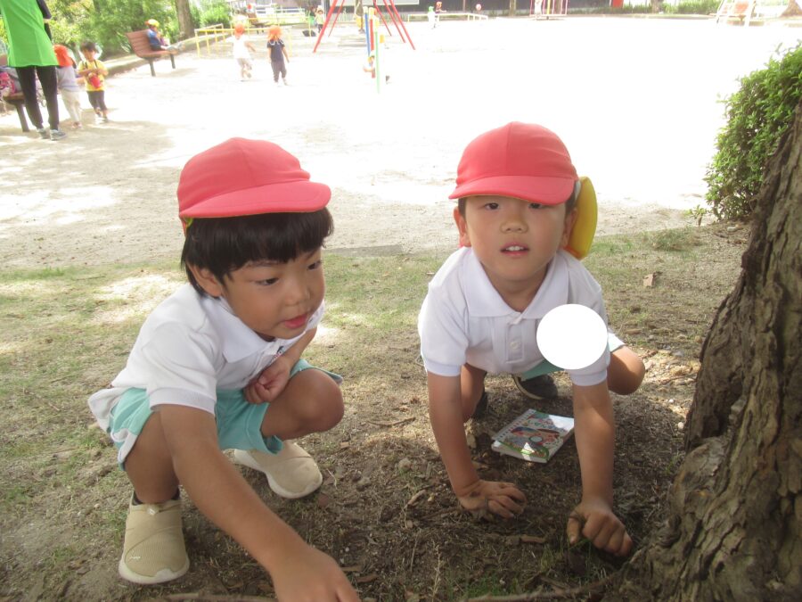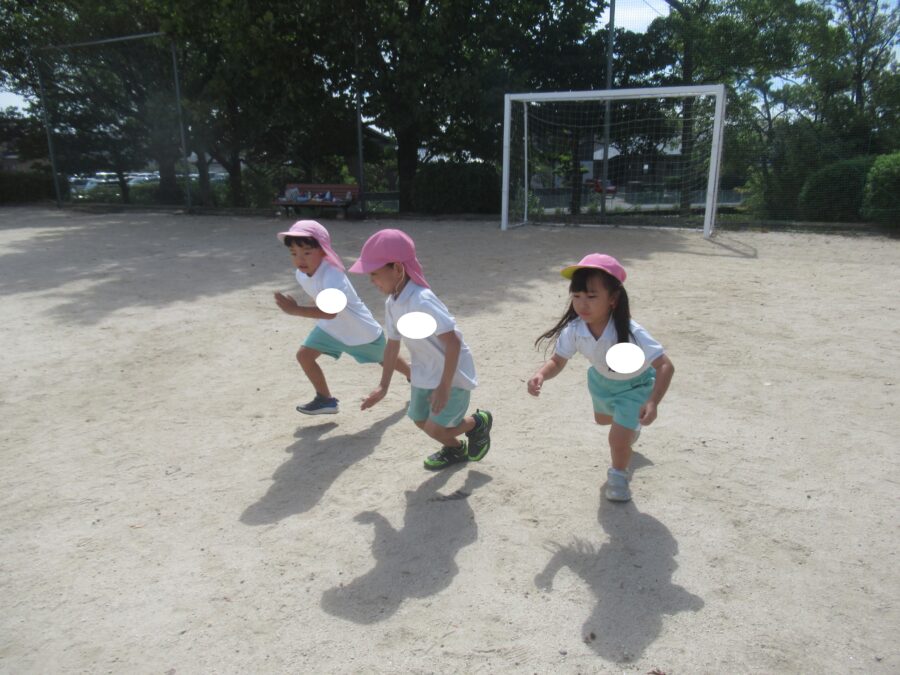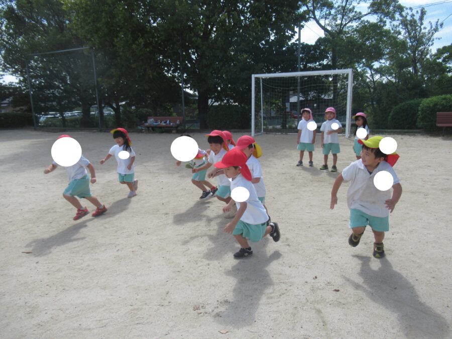 秋探しの他にも、グランドかけっこをしているお友だちがいました![]()