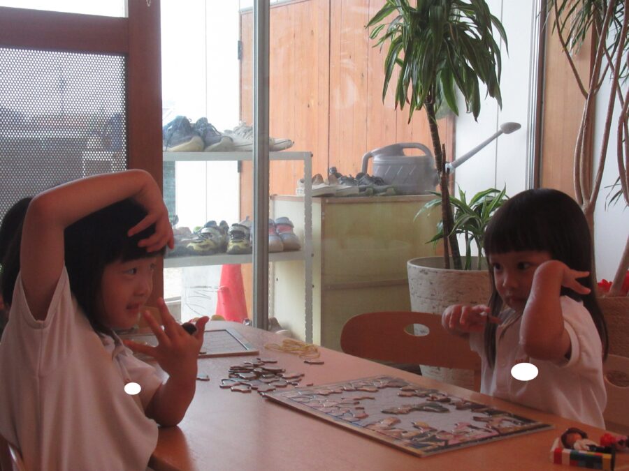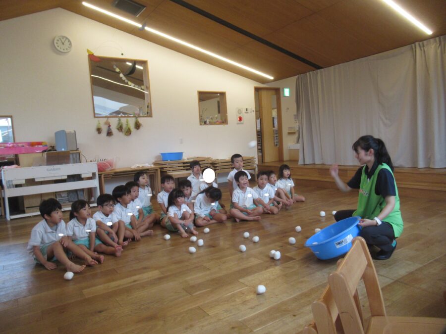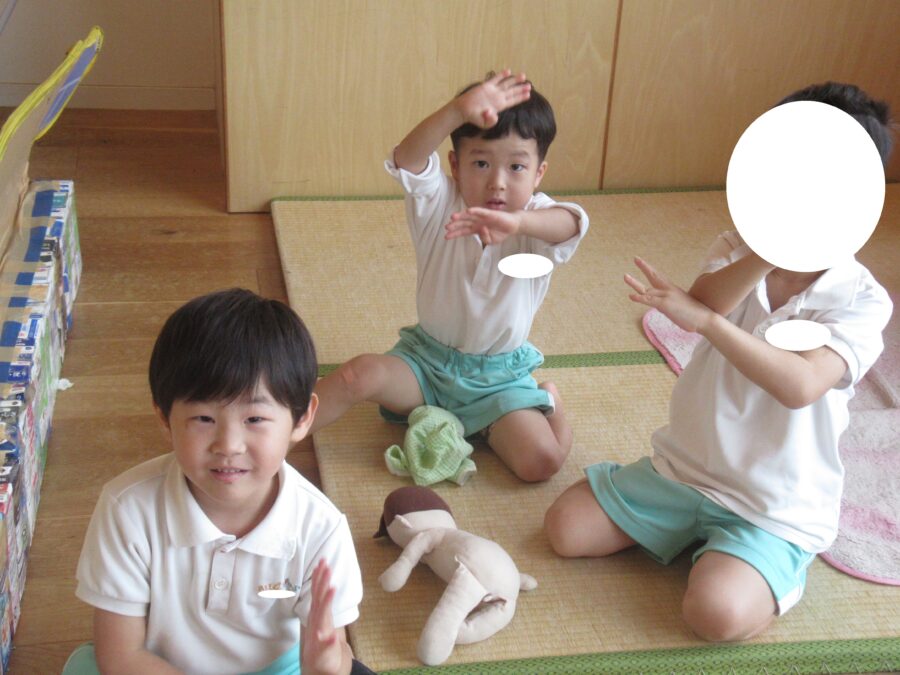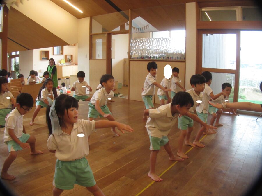 外遊びができず残念そうでしたが、きらきらさんはみんなで大きな掛け声を出して踊ったり、玉入れをしたりしました!