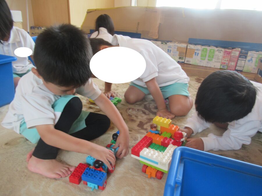 ブロックで車やお家をお友だちと一緒に作ってみたり、