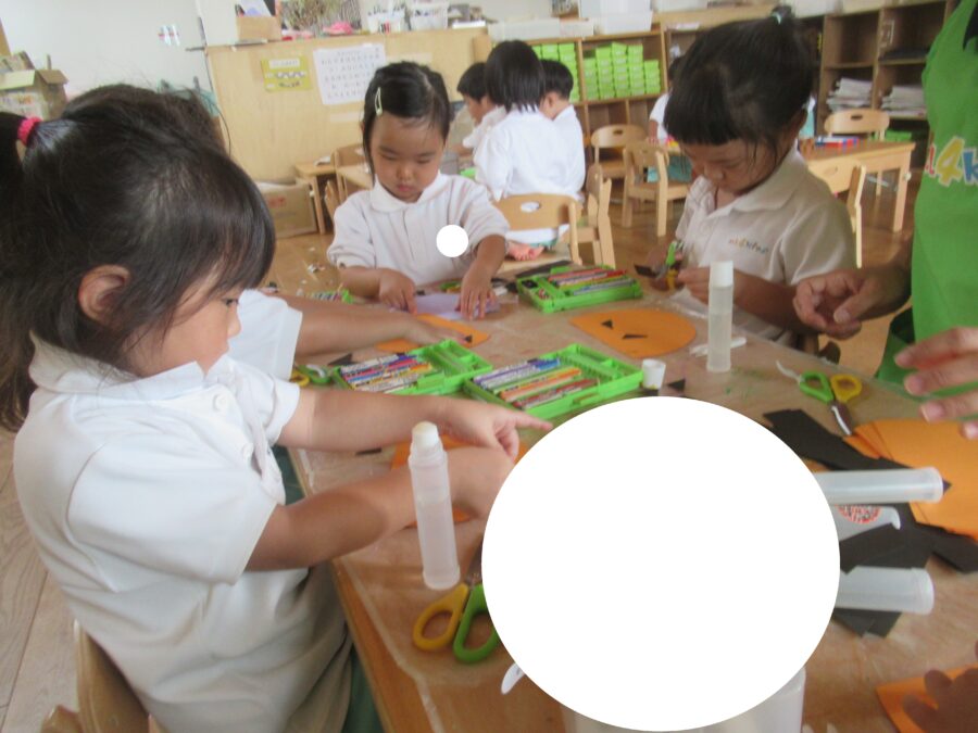 そして、ハロウィンにむけてお菓子をもらうためのカバン作りも![]()