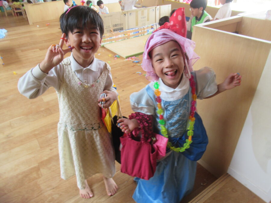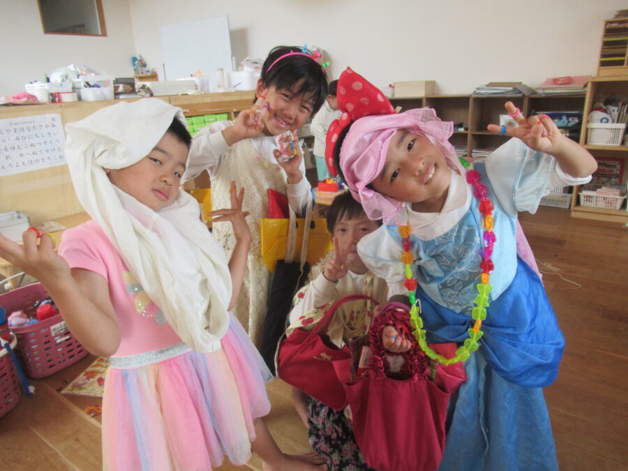 ドレスを着ておうちごっこをする姿がありました![]()