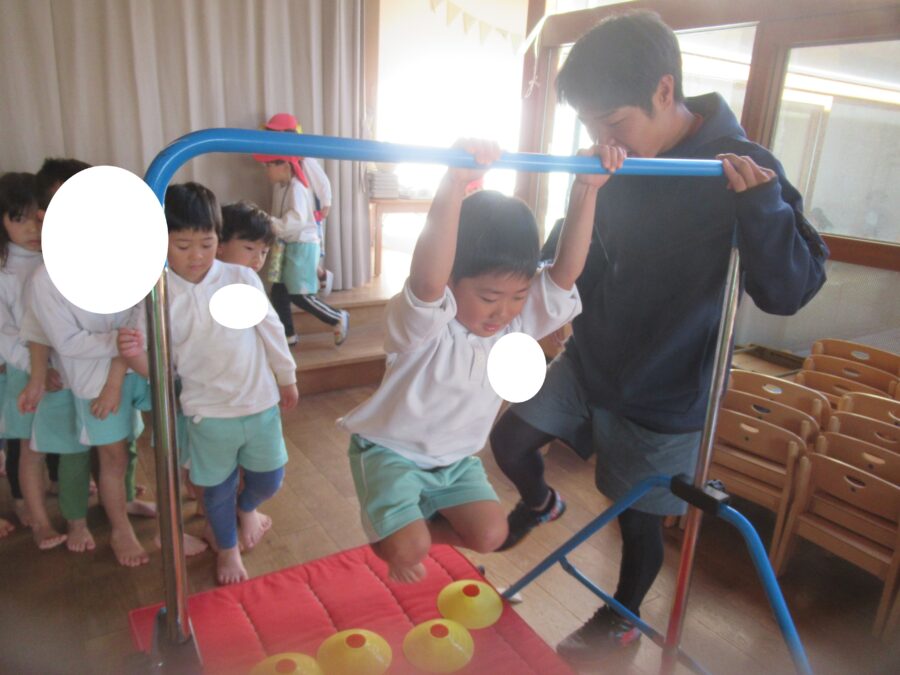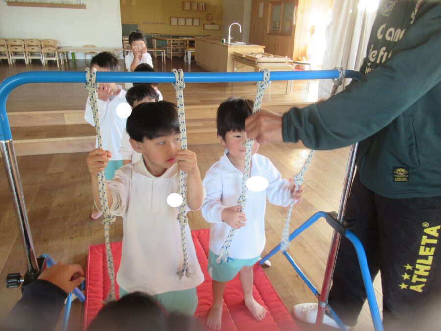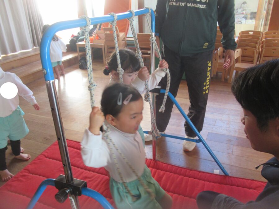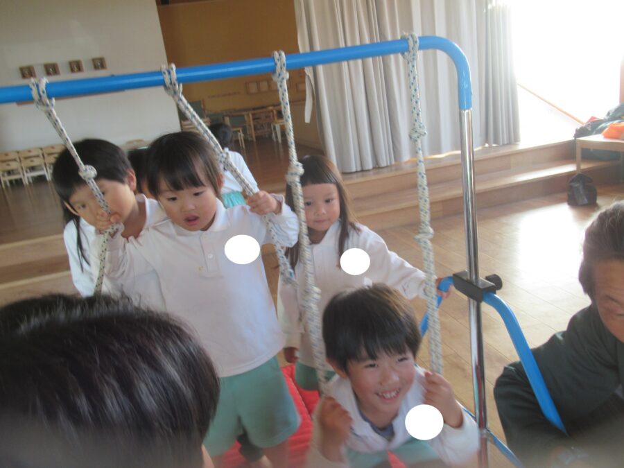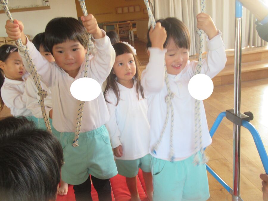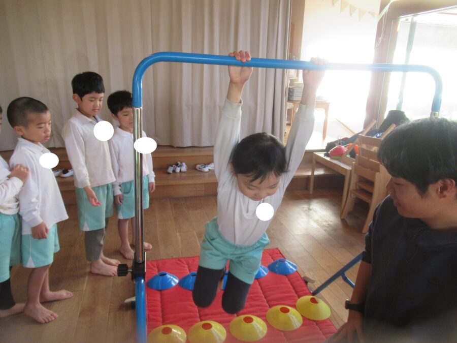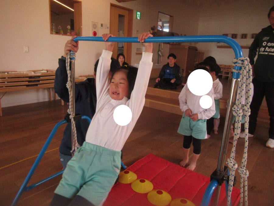 腕にギュッと力をためてぶら下がれるかな〜?(>_<)