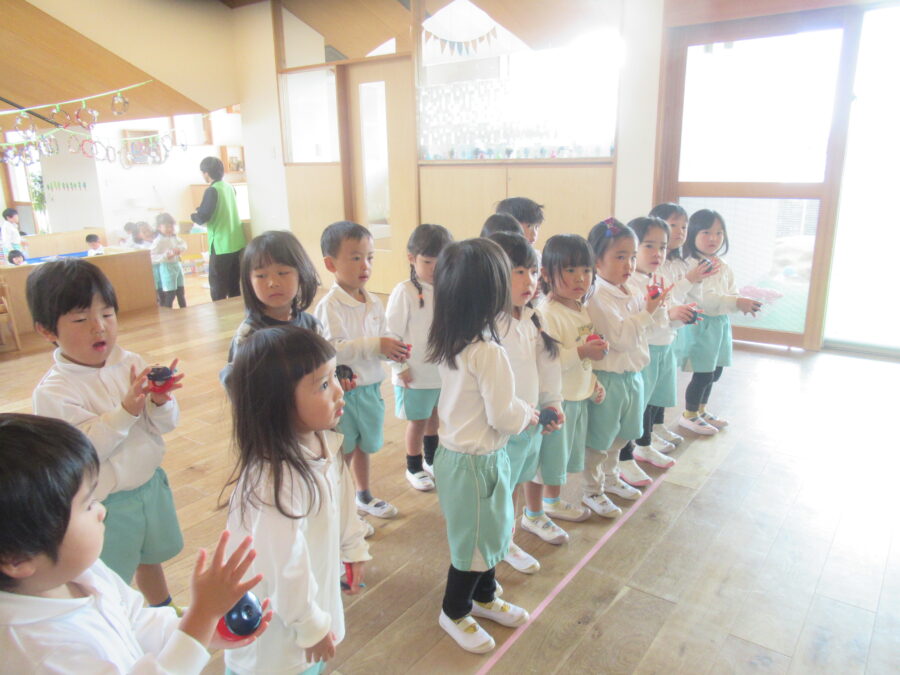 ピアノのリズムに合わせて、カスタネットをたたけたかな??![]()