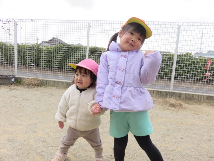 園庭ではにこにこ・すくすく・のびのびさんのお友だちと仲良く遊ぶ姿が![]()