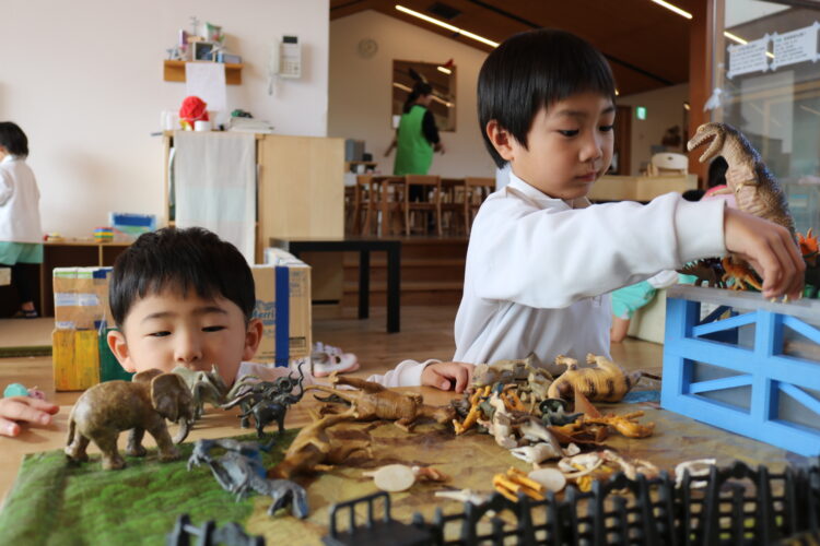 恐竜や動物を並べてサファリパークをつくってみたり、