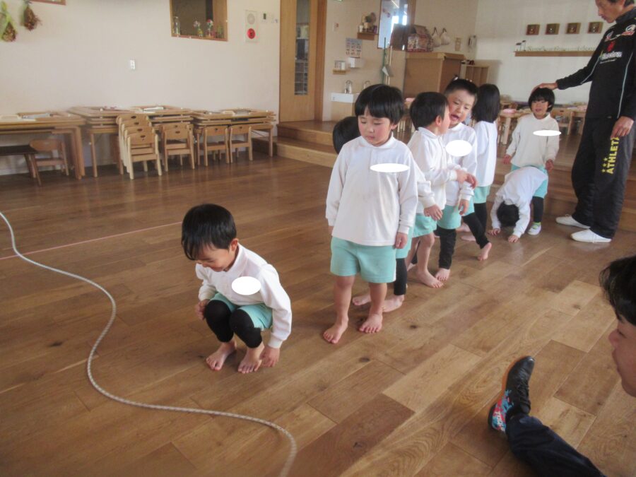 体操教室では、長縄を使っていろんな動きに挑戦しましたよ![]()