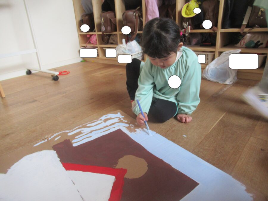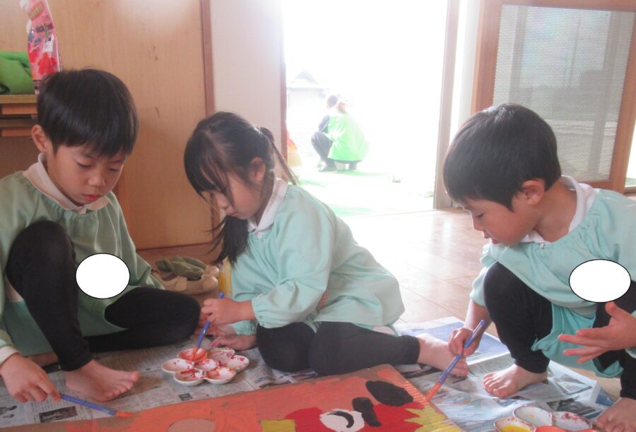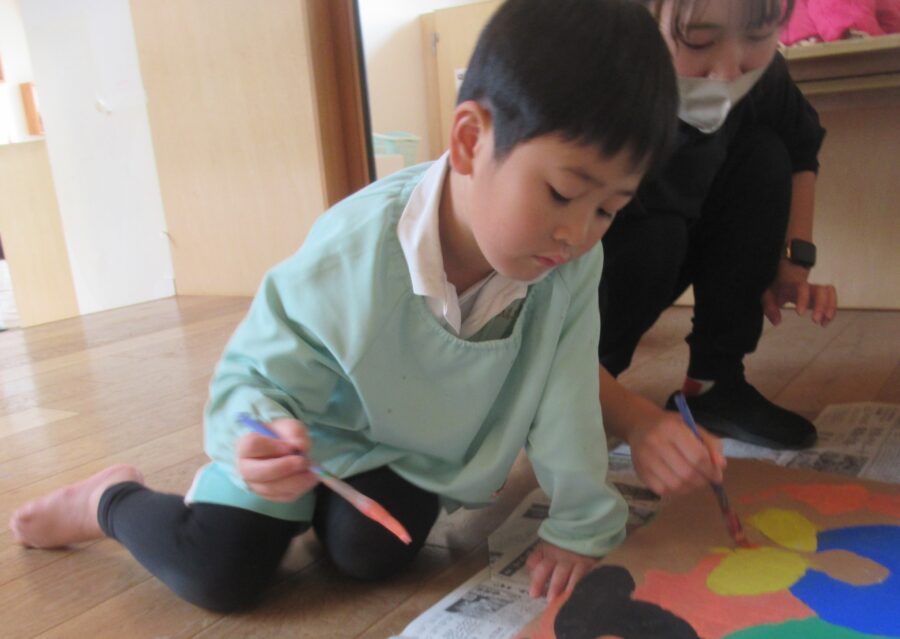 そらチーム、だいちチーム、うみチームは絵の具で色塗りをしましたよ!