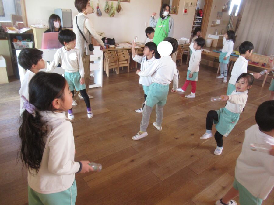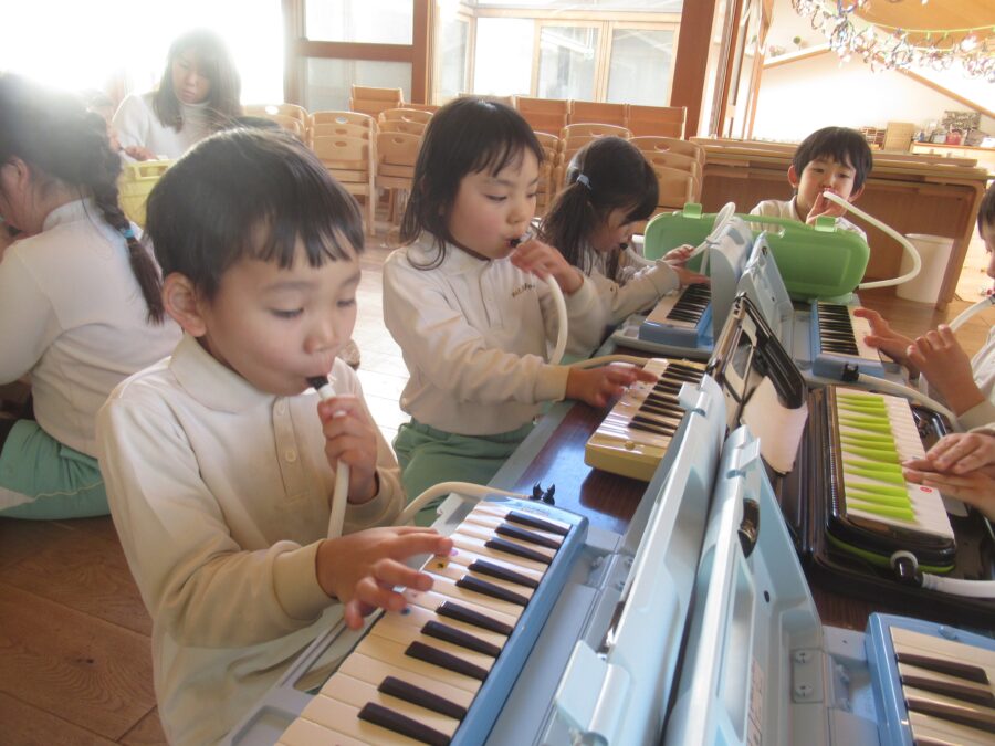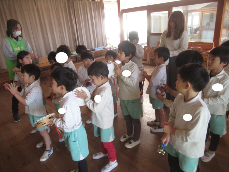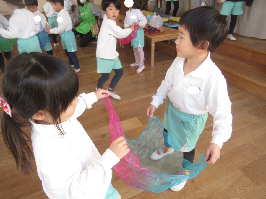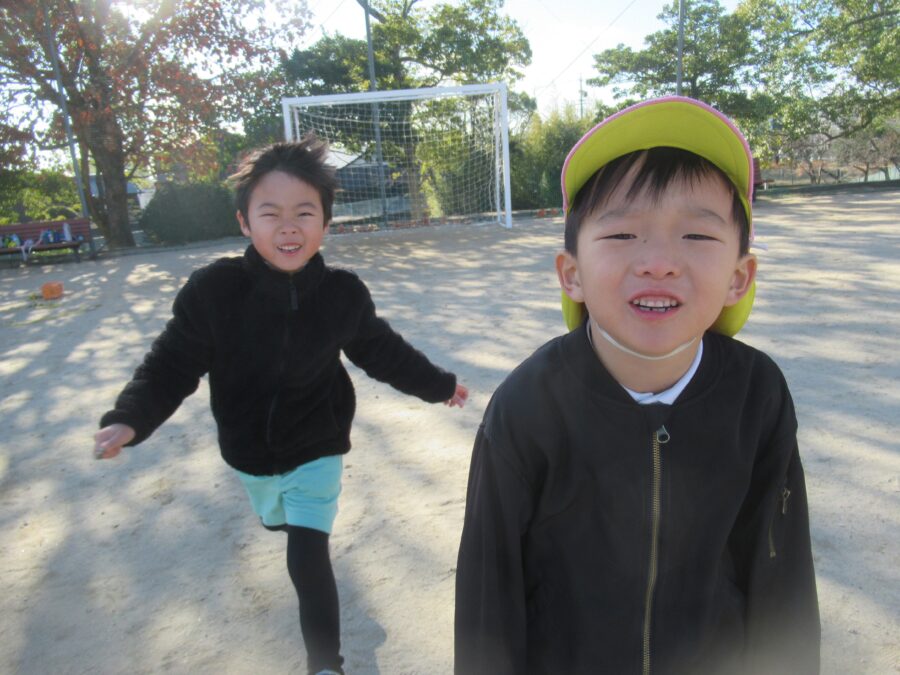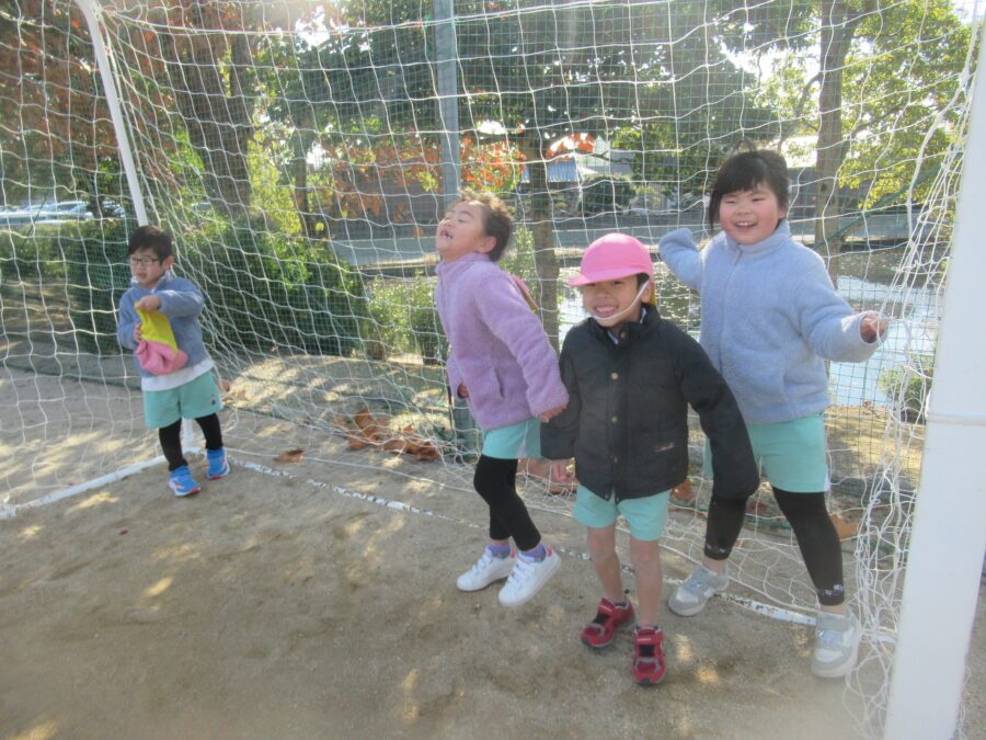 リトミック以外の時間は、グランドに遊びに行ったり、園庭で遊んだり