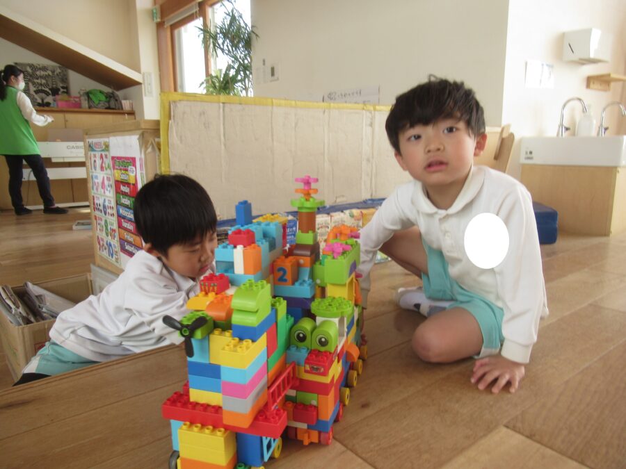 地図を見ながら街を散策しました✨お部屋ではお友だちとブロックで大きな作品を作ったり…大きなラキューで遊んだり…おままごとで遊ぶなど様々な遊びをする子ども達がいました!!!カメラに向かってハイポーズ📷✨男の子たちもハイポーズ📷✨