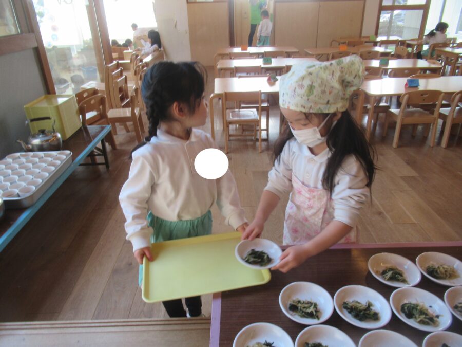 きらきらのお友だちは、昨日から配膳当番がはじまりました![]()