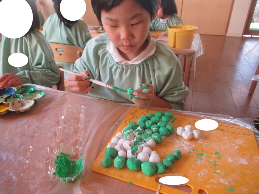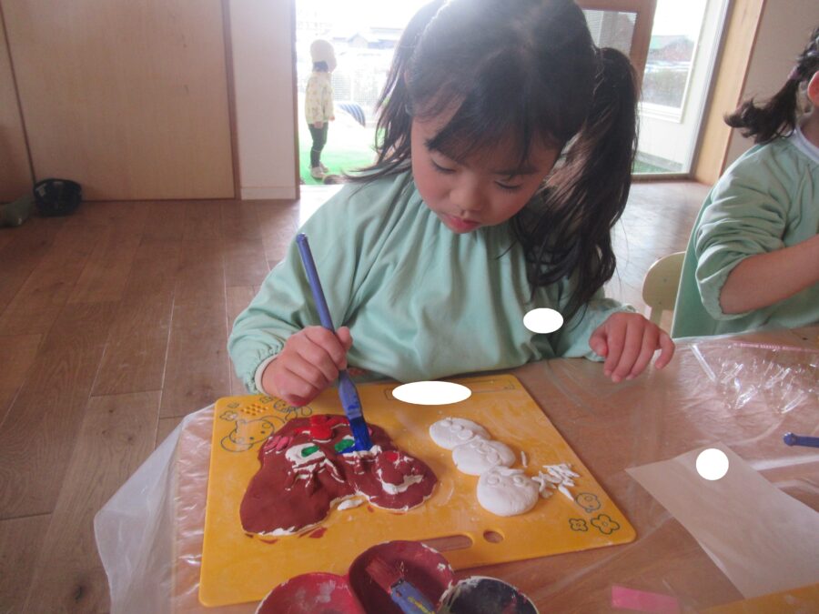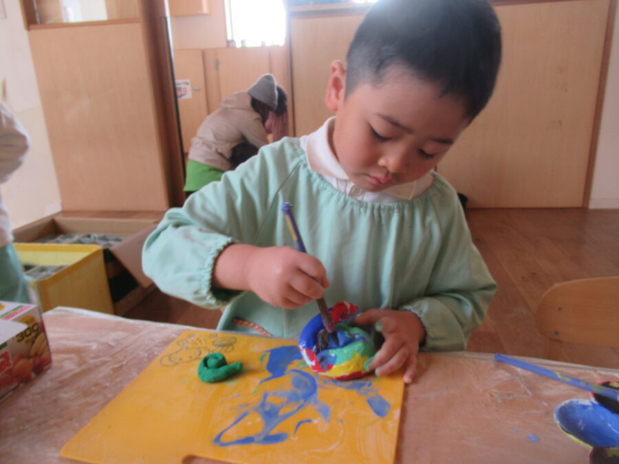 紙粘土が乾いていたお友だちは色塗りをしました!