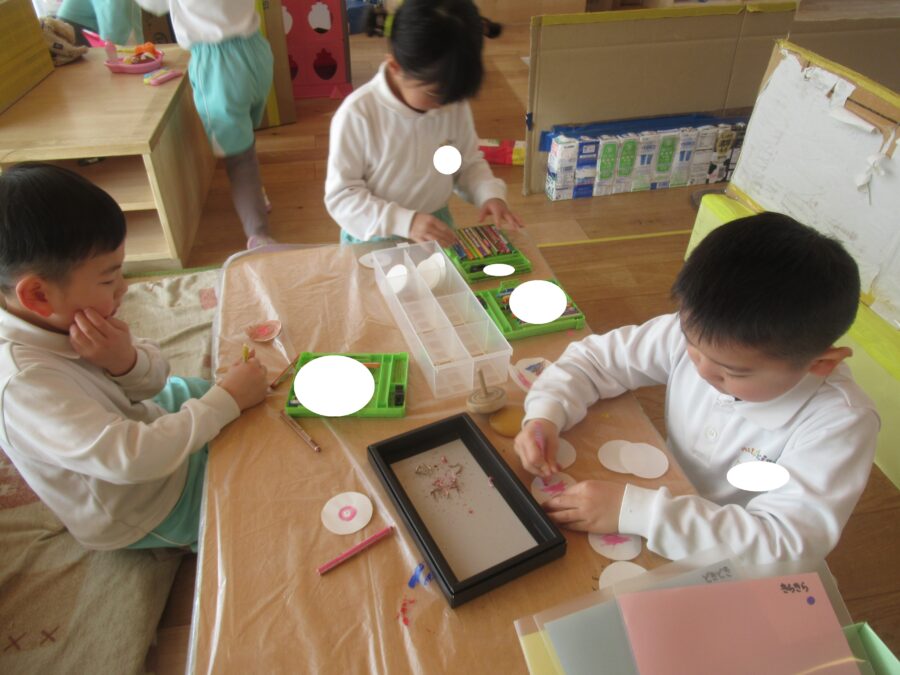 いろんな色でお絵描きして、コマにつけて回すそうです![]()