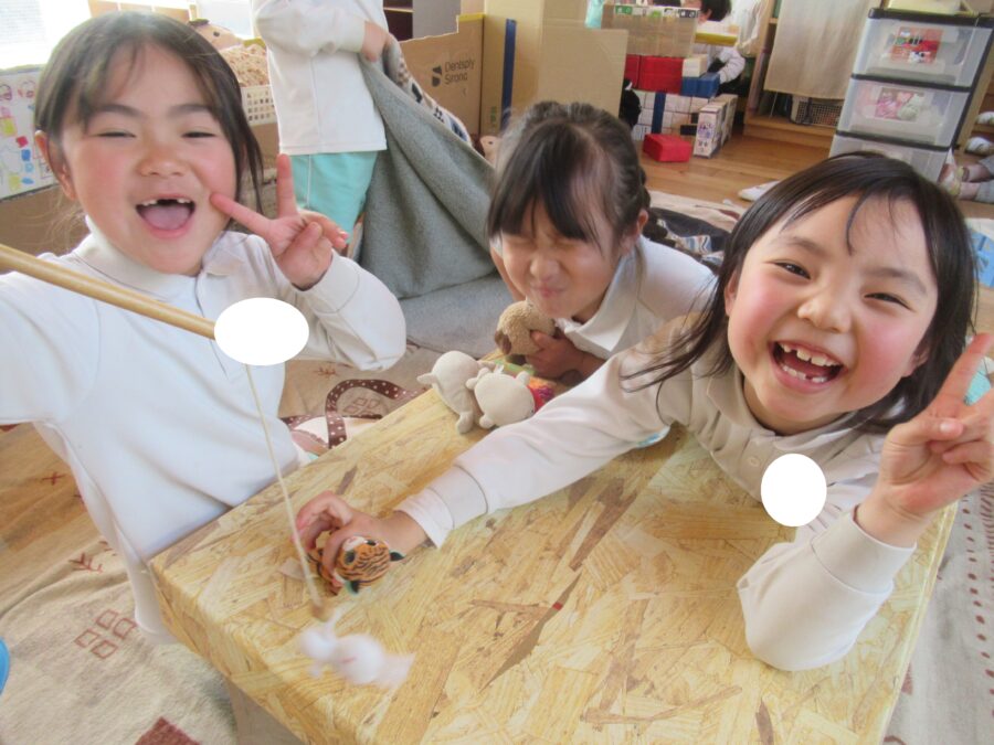 お部屋でもごっこ遊びや粘土などイメージをもった遊びが人気です![]()