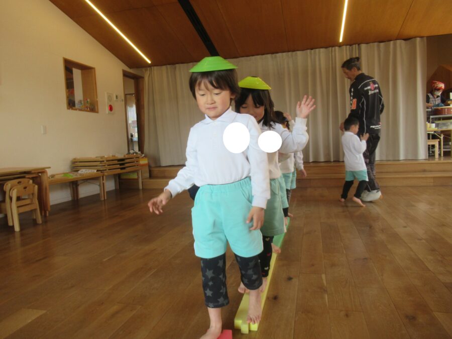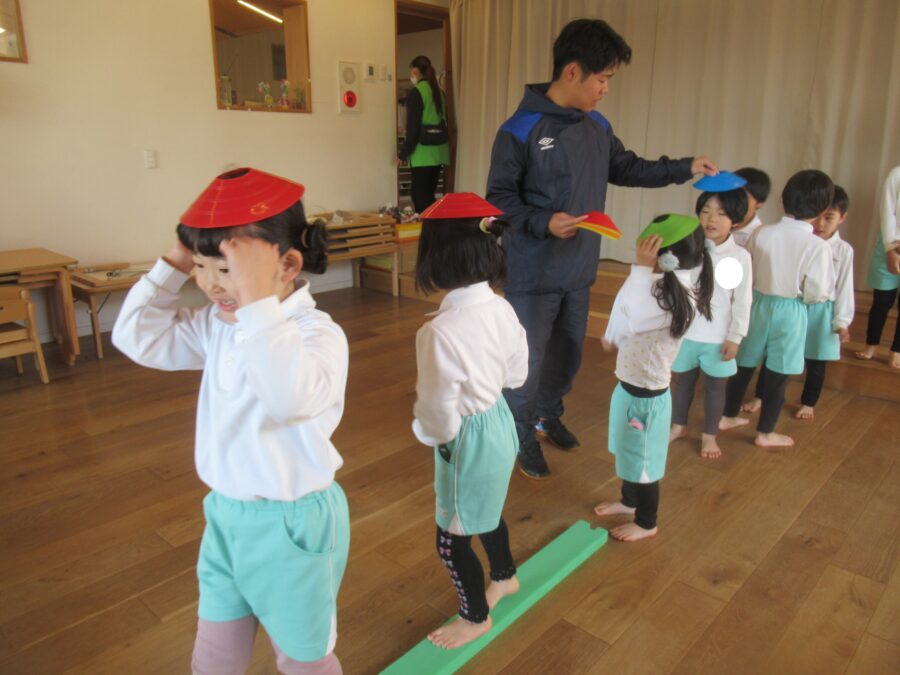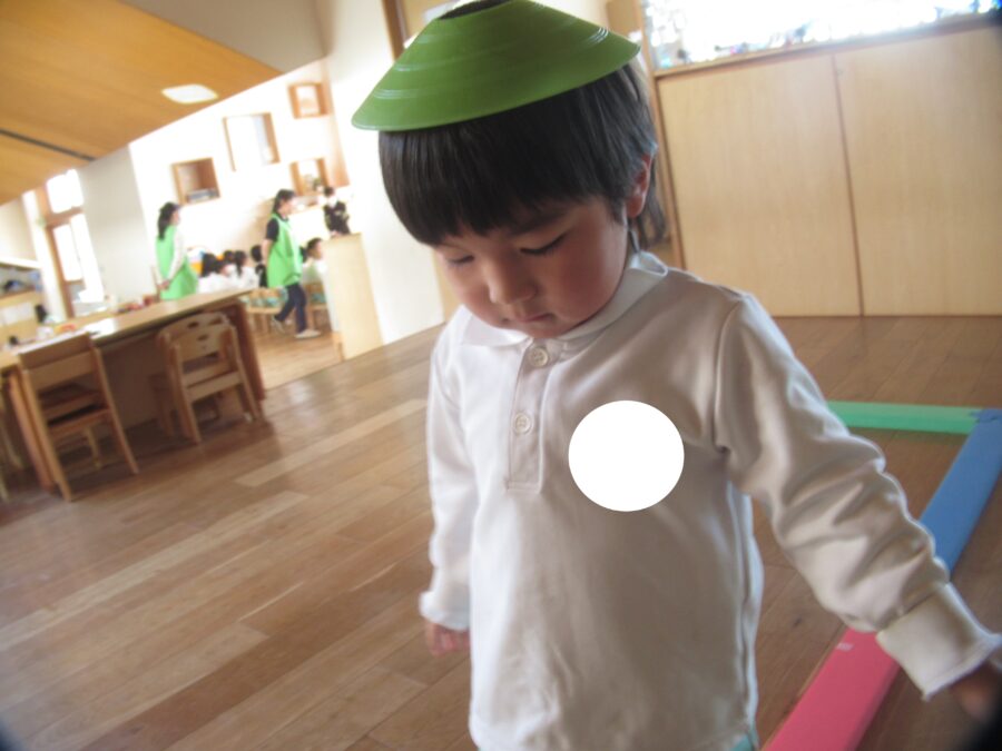 頭にコーンをのせながら渡れるかな・・・?💦