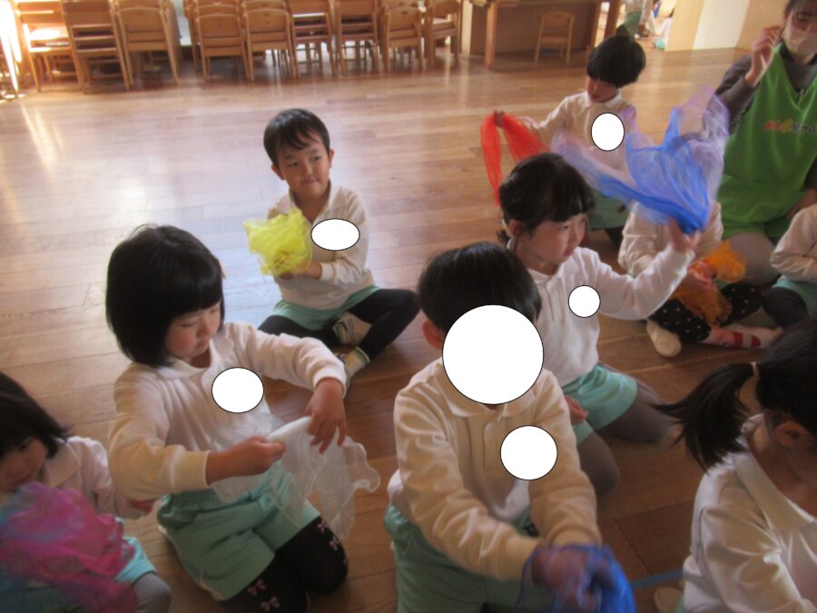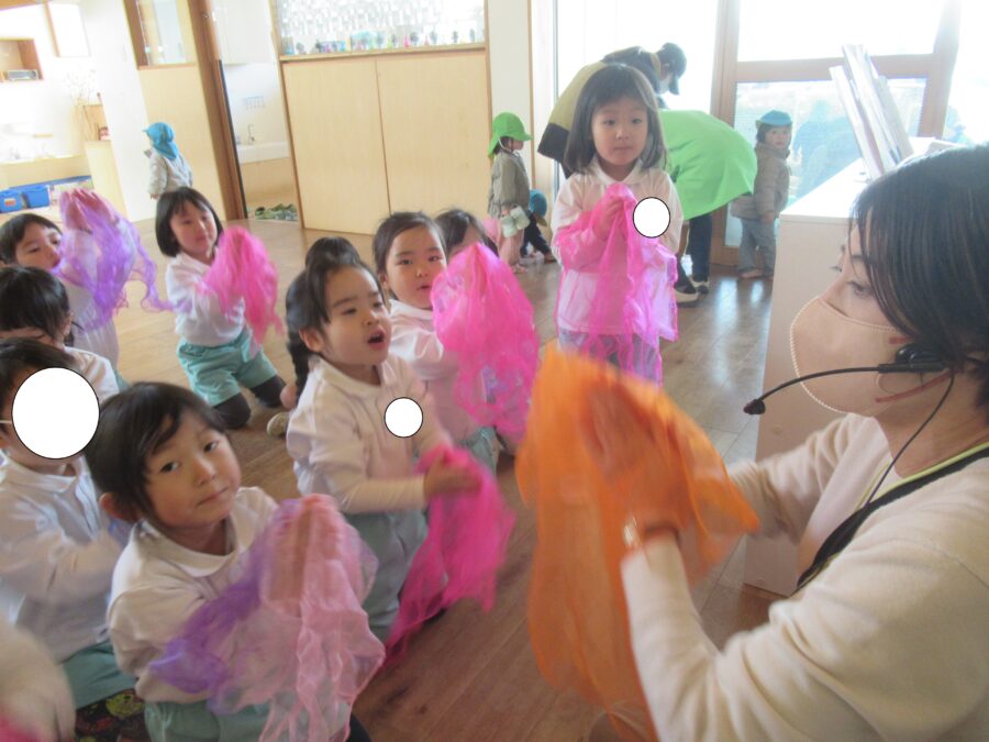 どきどきさんとわくわくさんは、音楽やリズムに合わせてカスタネットを叩いたり、スカーフをヒラヒラしたりして楽しみました!