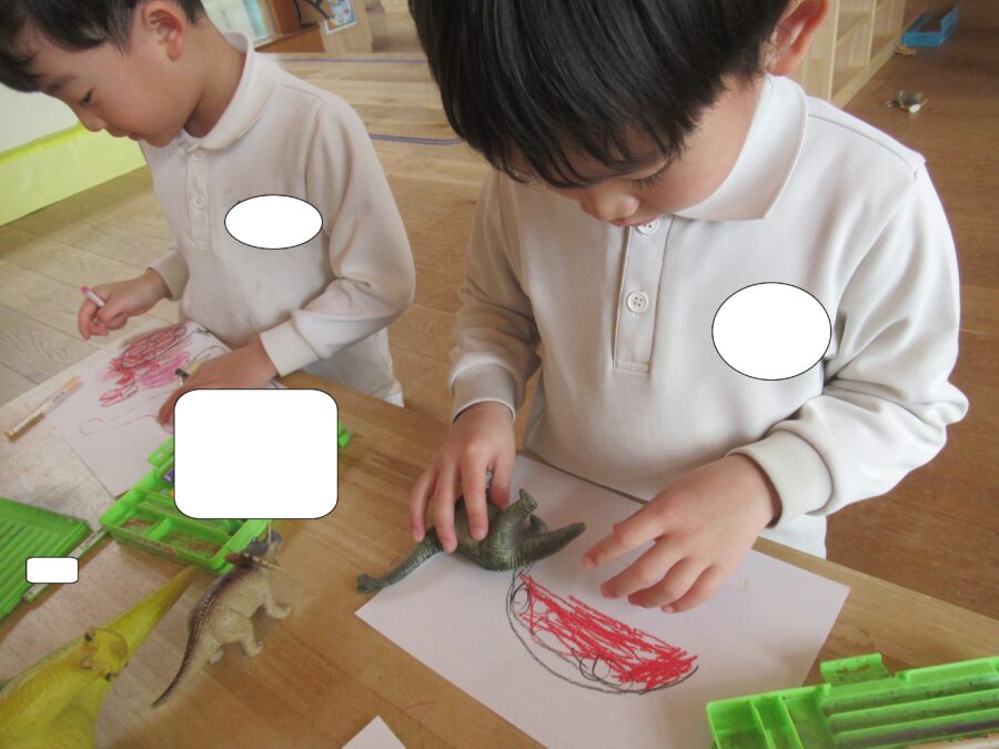 恐竜のおもちゃを見て描いてみたりして楽しみました!