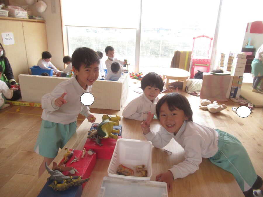 恐竜やブロックを色々な形につなげて楽しんでいましたよ!