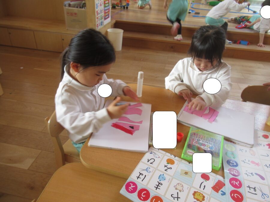 画用紙を切って画用紙にペタペタ貼っている子や・・・