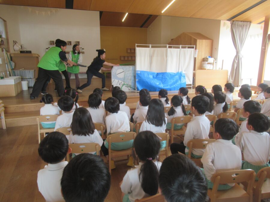お楽しみ会は大きな魚の劇を先生たちが行いました🐟