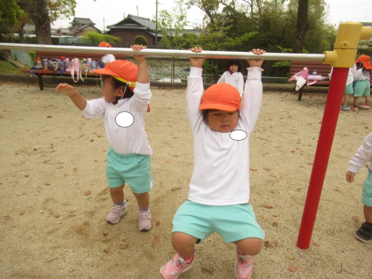 公園では、鉄棒に挑戦したり・・・