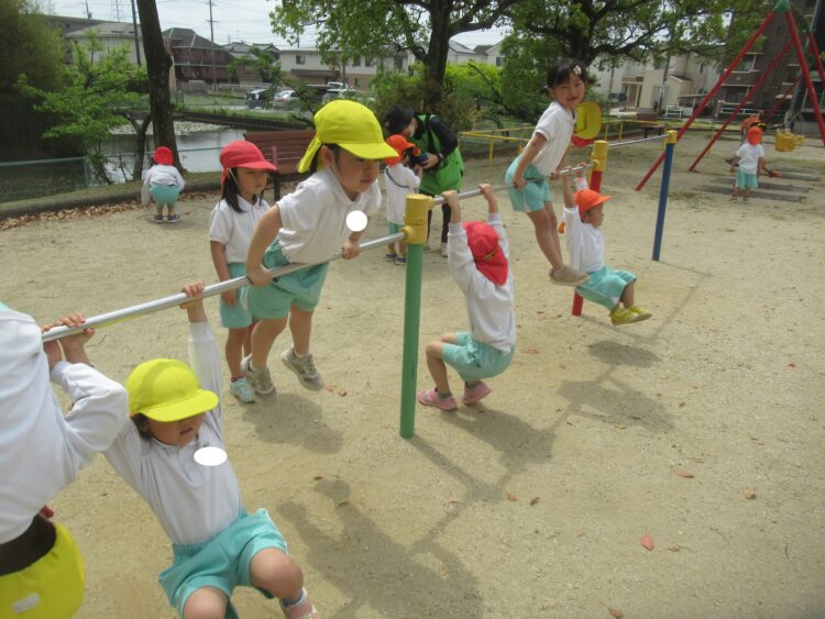 遊具のほうでは、鉄棒が人気!![]()