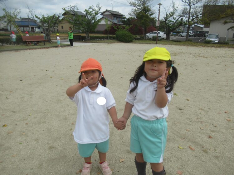 お友だちと手を繋いで公園をお散歩したり![]()
