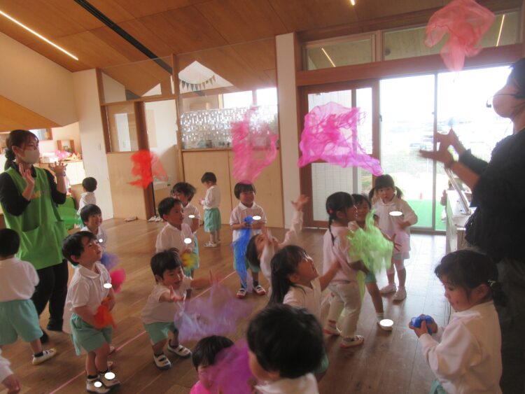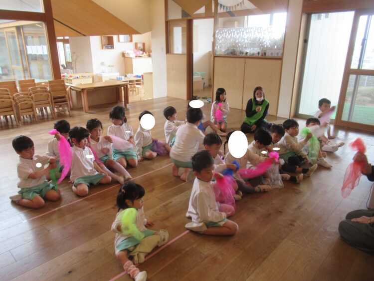 どきどきさんも、ちゅーりっぷやたんぽぽ、おつかいありさんなど…季節の歌に合わせて、リズム遊び![]()