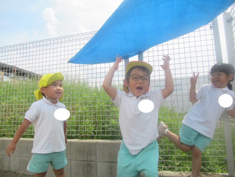 カメラに向かってハイポーズ📷✨お外では先生と一緒にダンスをしたり元気に遊んだりする姿がありましたよ!!!
