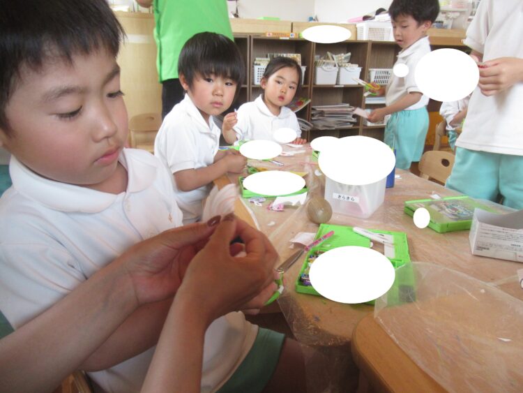 先生と一緒に製作をしたりと元気に遊んでいました![]()