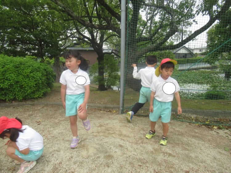 きらきらさんは、体操教室の前に今岡グラウンドに行きました。