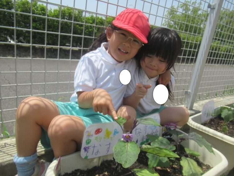 なすのお花が咲いたよ!咲いたのを発見してみんな大喜び!